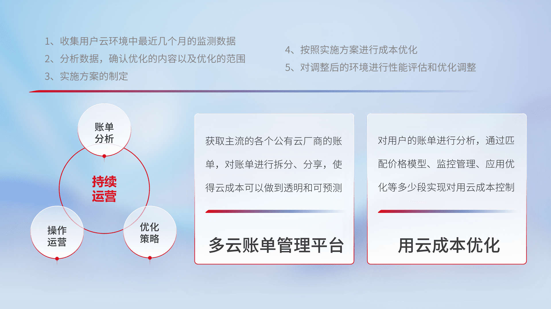 监控业务系统资源开销,,对资源的消耗精确计量,,,实现费用的透明化管理,,不断提升资源使用率,,调整资源购买方式,,,降低资源费用成本,,用云成本可预测、、用云费用可优化,,云资源配额有据可依。。